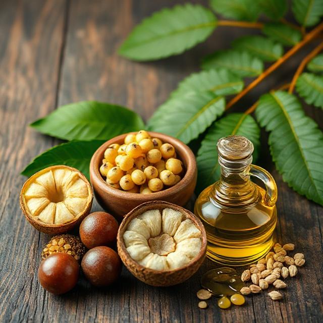 - Neem: Soothes itchy scalp and reduces dandruff.