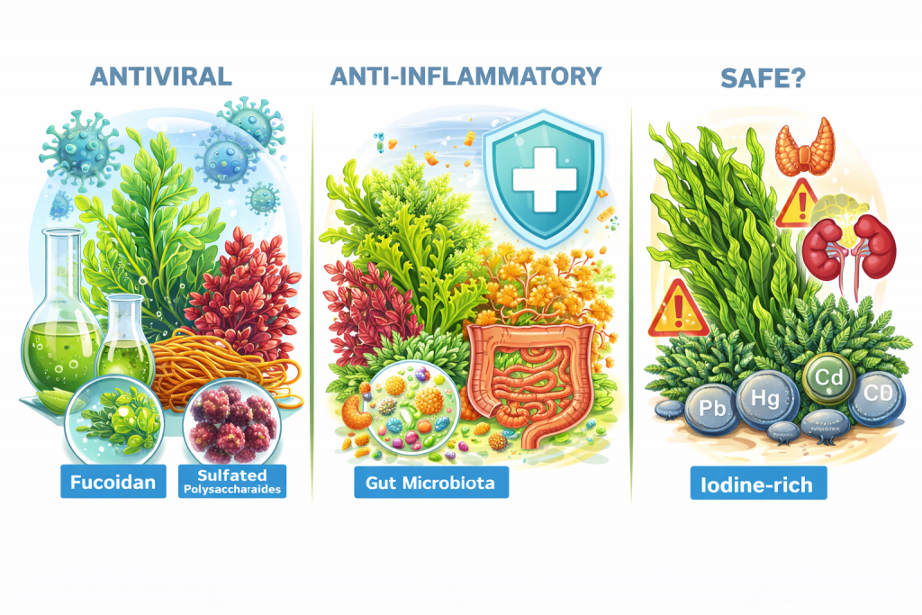 Fucoidan, found in brown seaweeds, has received particular attention for its antiviral and immune-modulating effects. Research indicates that fucoidan can stimulate innate immune responses and reduce viral load in experimental settings.