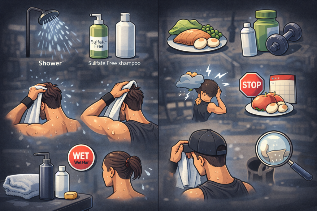 Many men notice increased shedding after intense workouts and assume it’s “workout sweat hair loss.” In reality, sweat is usually a contributing factor only when combined with poor scalp care.